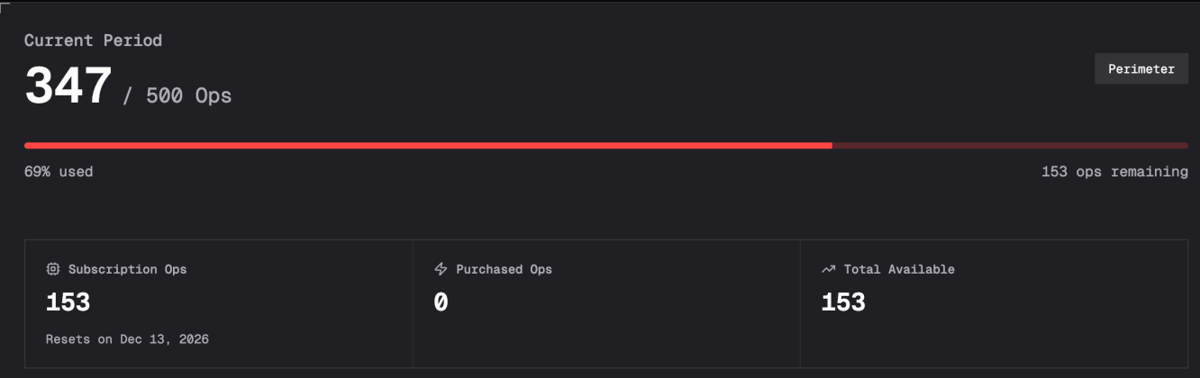 Your dashboard shows your total available Agent Ops and applies them automatically as tests run.