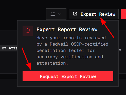 If your auditor requires human validation, RedVeil offers an optional Request an Expert Review service.